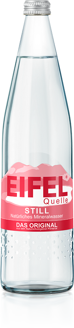 Dann trink doch unsere EIFEL-Quelle Still. Natürliches Mineralwasser ohne Quellkohlensäure, enteisent. EIFEL-Quelle Still, abgefüllt am Quellort, aus der EIFEL-Quelle, Andernach.